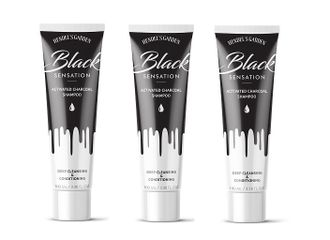 The set includes 3 tubes of Black Sensation shampoo with activated carbon.
